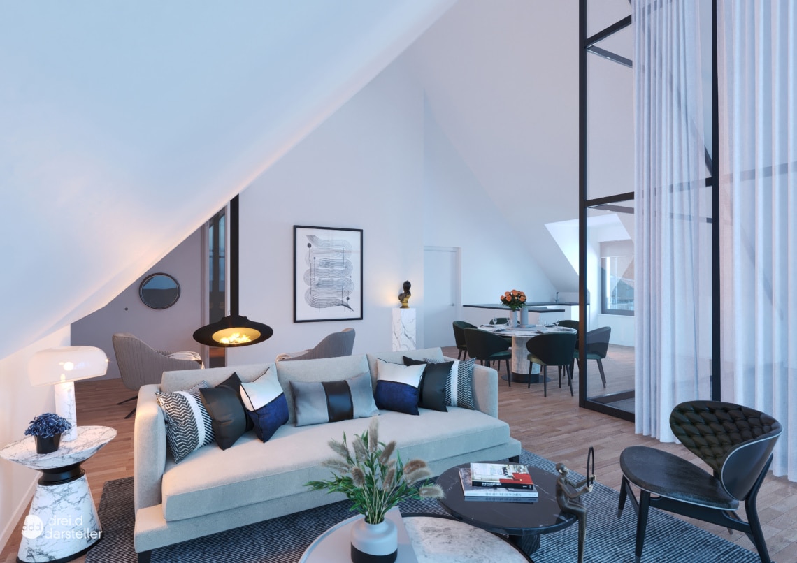 3. Obergeschoss, Loggia und Balkon, Dorf- und Seeblick, Raumhöhe bis 5,40 m